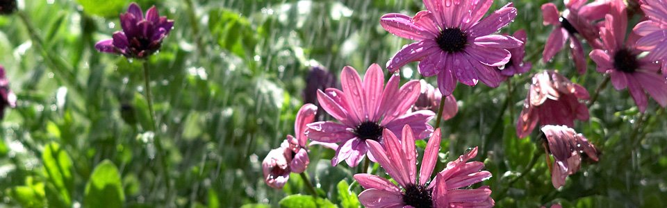 Vinduespartier, der går fra loft til gul, mange døre, der fører i det fri - alt sammen med til at skabe en flydende overgang og oplevelse af ude og inde.