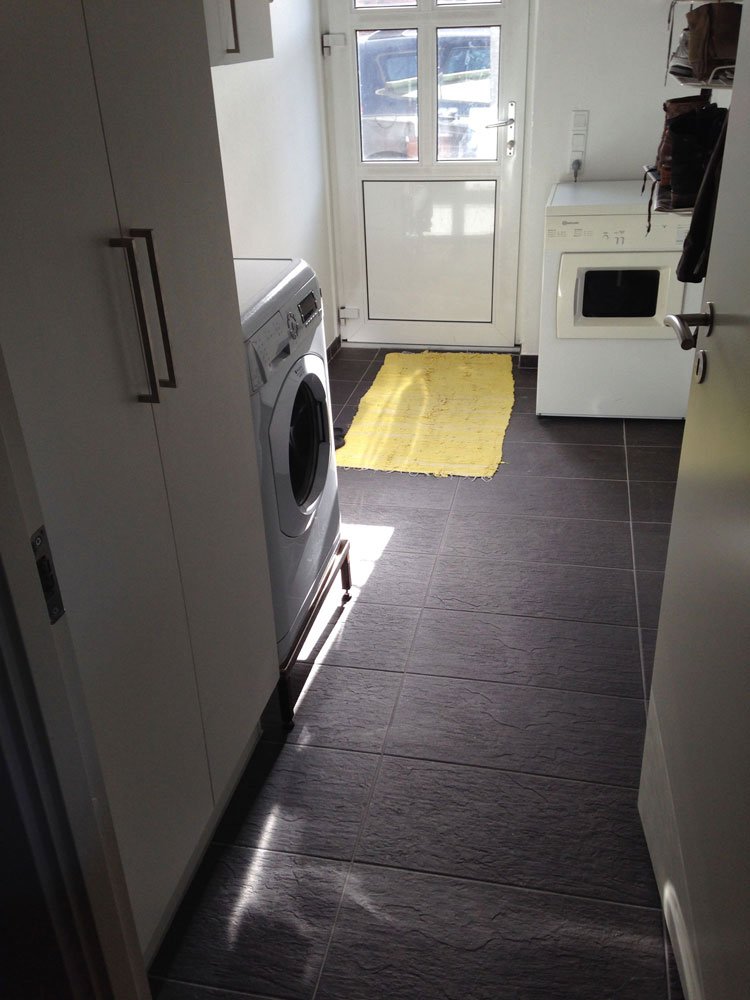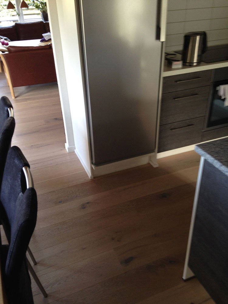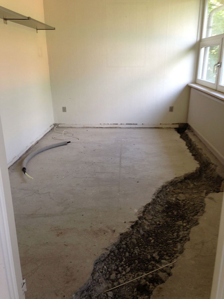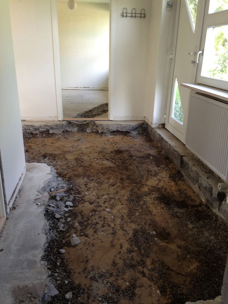 Familien Krog fik lige pludselig gulvvarme i rum, der ikke var lagt gulvvarme i. Og første opringning var til Henrik Fredsbo, som sikkert guidede familien gennem hele processen med forsikringsselskab, fraflytning, opgravning af gulve i hele huset og en perfekt renovering. En proces, der varede tre måneder.